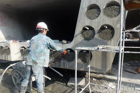 喷射混凝土补强法是一种用混凝土喷射机将混凝土拌和料和水(干喷机)或混凝土湿料(湿喷机)以高速喷射到混凝土结构上,并快速凝固成型的加固方法。喷射混凝土不需要振捣,它借助水泥与骨料之间的连续冲击实现密实化,也不需要支模或只需部分支模,施工方便、速度快、工期短,喷射凝固层与原结构粘结力强,所以在大范围加固工程中具有独特优势;其缺点是需要专门的设备,对混凝土的配合比设计要求较高。这种方法常用于病弱混凝土的局部或全部更换;在梁、板等构件的下面增补混凝土;填补混凝土和砖石结构中的孔洞、缝隙及混凝土墙的麻面。