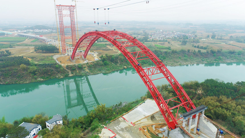 自年后复工复产以来,广西路建集团正龙红水河特大桥施工现场涌动着的冲刺“开门红”热潮,在乍暖还寒的春光里展现出竞进之姿,60名施工人员开足马力抢抓进度。随着拱肋混凝土完成灌注施工,拱肋接头打磨焊接及扣索拆卸松力也同步完成;格子梁拼装施工也在有序进行,目前进度达75%。接下来,武忻2-1分部将加快吊杆安装施工进度,尽快打开格子梁吊装施工新局面,向全桥通车目标冲锋。(周岩松)