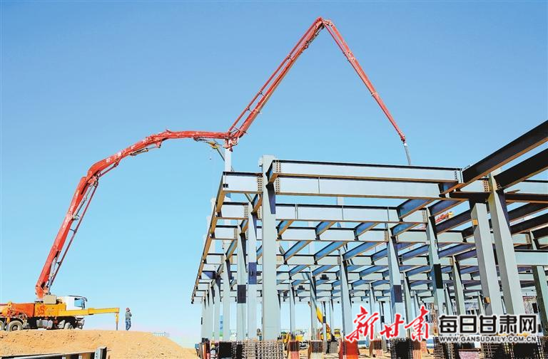 3月12日,施工人员正在张掖国家玉米种子产业园进行混凝土浇筑作业。张掖国家玉米种子产业园占地面积4660亩,由九大功能区组成,概算投资63亿元,分三期建成。新甘肃·甘肃日报通讯员 杨永伟