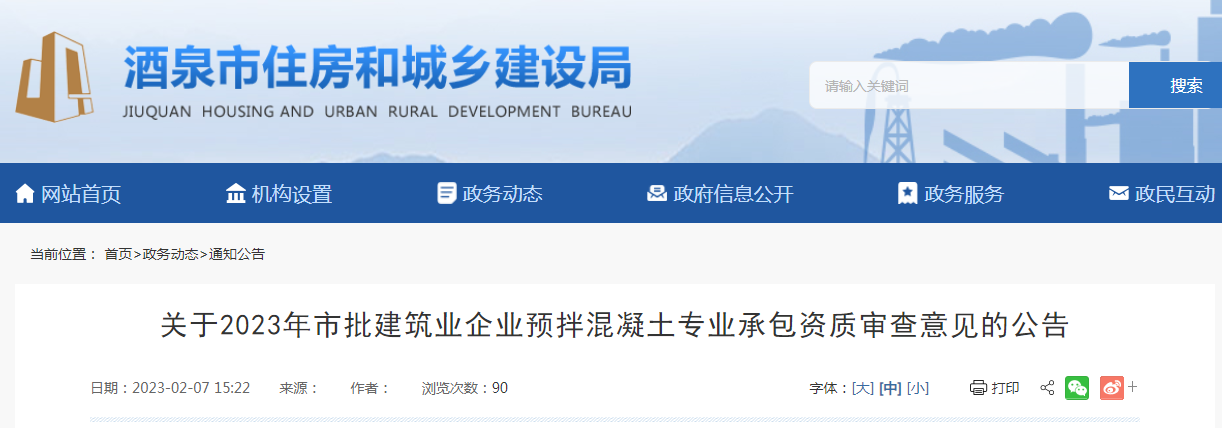根据《中华人民共和国行政许可法》《中华人民共和国建筑法》及有关建设工程类企业资质管理规定,经酒市建审字〔2023〕1号公示,现将我局审查核准的建筑业企业资质单位名单予以公布。特此公告。