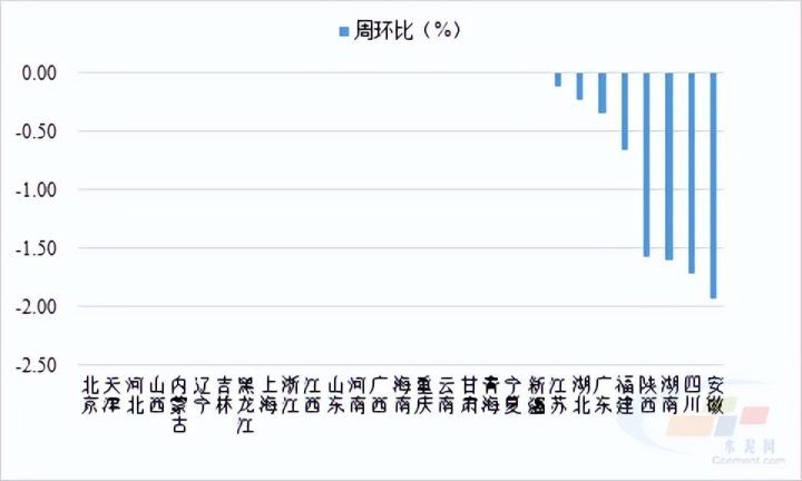 从29个省市的C30混凝土价格来看,本周安徽、四川、湖南和陕西市场混凝土价格跌幅靠前,环比下跌1.58-1.93%左右,而福建、广东、湖北以及江苏市场混凝土价格环比跌幅在0.11-0.66%之间;国内其他省市混凝土价格持稳运行。