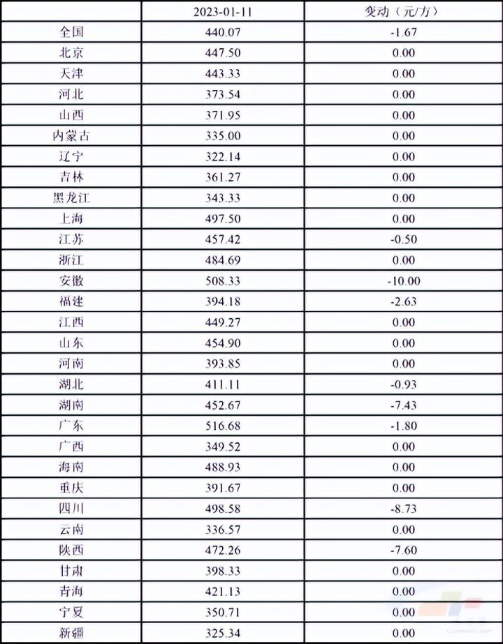 西北地区高位回落。西北地区受寒冷气温和雾霾天气影响,下游施工几乎全面停滞,仅部分重点项目仍在支撑需求,混凝土价格稳中有降。其中,陕西局部混凝土价格下调10元/方。