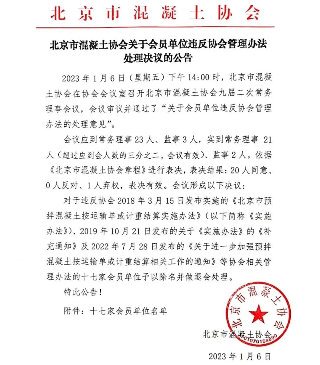 17家混凝土企业被协会除名!(附名单)