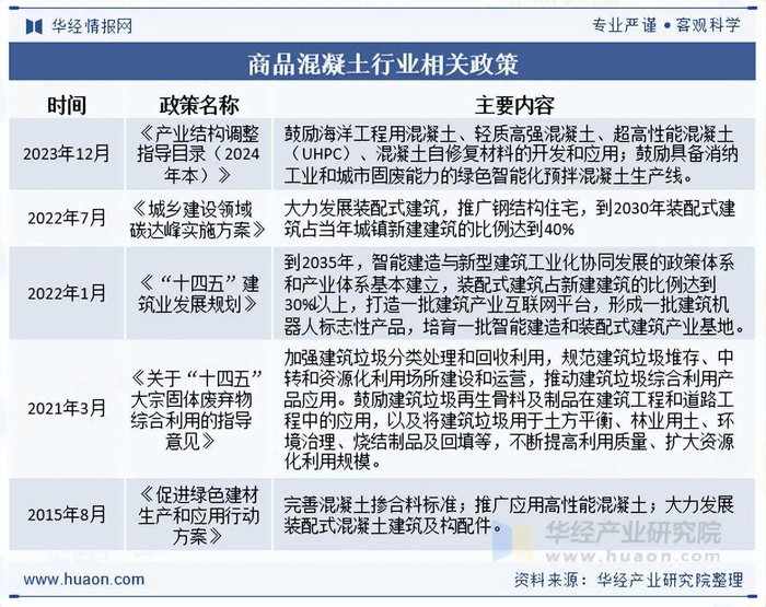 本文节选自华经产业研究院发布的《2025年中国商品混凝土行业发展现状及趋势分析,经历了多年的高速发展后,将逐步向高质量发展的转型阶段过渡「图」》,如需获取全文内容,可进入华经情报网搜索查看。