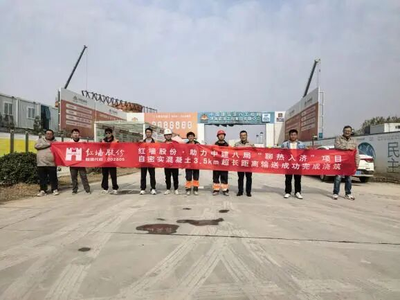 从10月27日开始历时19天,红墙股份技术团队24小时全程跟进与服务,确保近16000立方米自密实混凝土顺利浇筑。根据公开资料显示,C35自密实混凝土3.75公里的超远距离输送,刷新了混凝土连续输送的最远距离,也促进了相关技术的挑战与升级。从试验开始、泵送施工及完成浇筑,红墙股份专业的产品技术、高效的售后服务与一丝不苟的敬业精神,使中建八局项目方无比敬佩并对我方高度赞扬,并特意致以“感谢信”。