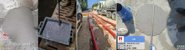 在相关混凝土公司和外加剂企业束手无策之际,2025年9月,红墙股份技术团队受邀现场跟进,寻找最佳技术方案。经讨论研究,技术团队创新性地采用特定参数的高频振动平台模拟隧道皮带震动环境和规律;根据石灰岩机制砂技术特性修正混凝土配合比参数;使用自研单体研制的多种功能型聚羧酸产品复合,辅之以特殊表面活性剂与高分子水溶性聚合物,通过系列试验精确调整(功能型)高性能聚羧酸产品配方,最终确定符合项目需求的自密实混凝土综合解决方案。根据试验研究成果,分别进行了皮带“抗震性”验证和750米盘管试验,效果超出预期。