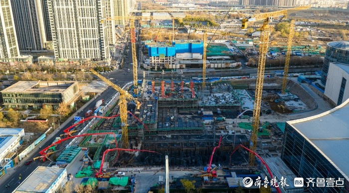 12月9日,山东国际会展中心二期项目取得阶段性进展,217米超高层塔楼大体积混凝土完成浇筑工作,项目整体建设进入加速推进阶段。