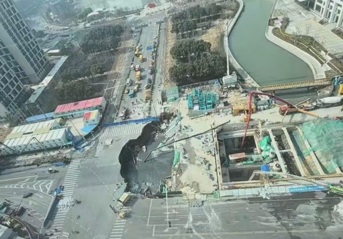 2月12日,上海嘉闵线七莘路地铁站附近塌陷核心区域。受访者供图2月12日20时许,新京报贝壳财经记者夜探抢修现场看到,现场有地铁、电信、联通、隧道、上海建工等多部门抢修人员正在施工,有大量混凝土搅拌车出入,抢修区域外围已设立警戒区,过往车辆需要绕行。